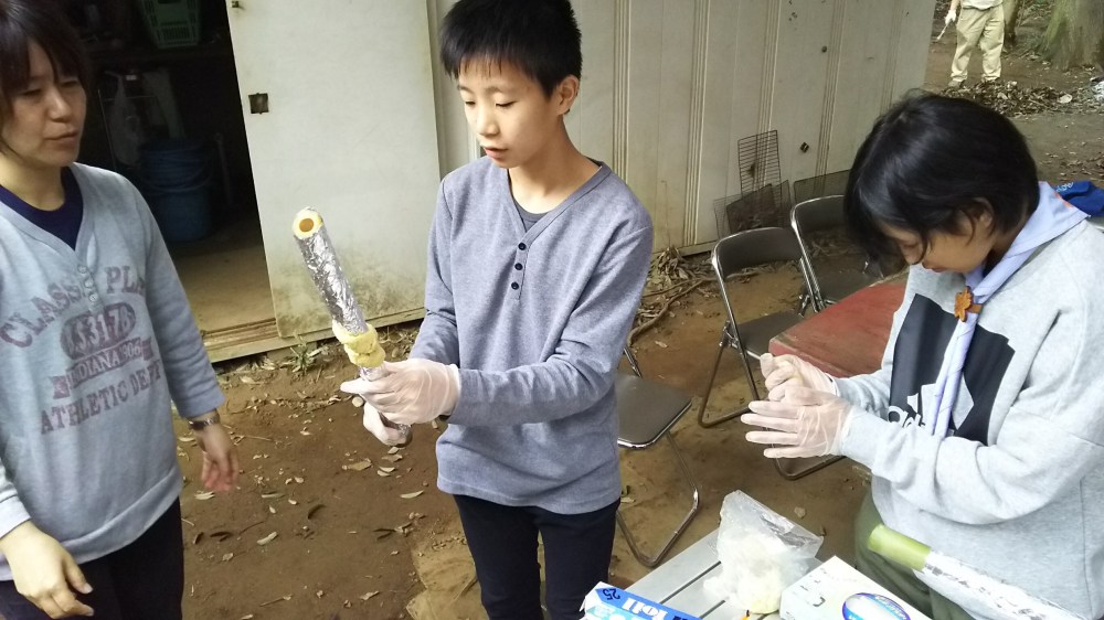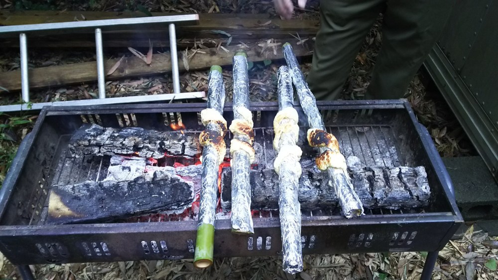 ボーイスカウト 2018.10.14 ボーイ隊デイキャンプ 投稿者: 澤橋 松王 投稿日: 2018年10月22日 大宮キャンプ場で野外料理を楽しみました。作っているのは巻きパンです。竹を切り出して、アルミホイルを巻いてから、パンの材料をこねて巻いていき、炭火で炙って出来上がりです。鳥の唐揚げも作って、美味しくいただきました。 共有: Facebook で共有 (新しいウィンドウで開きます) Facebook LinkedIn で共有 (新しいウィンドウで開きます) LinkedIn いいね 読み込み中…