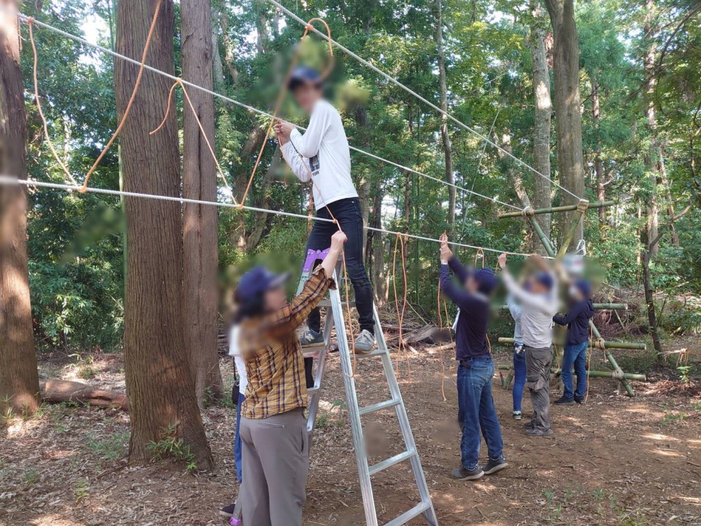 インストラクター不在で、かつ隊としてモンキーブリッジは初めての作製でしたので、途中で中止の可能性もありましたが、それぞれがロープワークの確認などしたので、安全を確保できた上でみんながブリッジを渡ることができました。