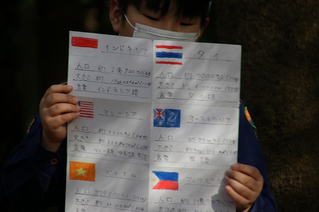 カブスカウト 2020.11.15&22 カブ隊世界の国々 投稿者: masako0615 投稿日: 2020年11月22日 今月のカブ隊のテーマは世界の国々☆ 組集会で国を決め、隊集会で発表会を行いました。 そして世界をイメージしたピザづくり♪ 一組はエジプトのピラミッド型。 二組はカナダの料理をイメージ! それぞれ大変おいしく焼けました(‘ω’) 来月はクリスマス会!来月が待ち遠しいです(*’▽’) 共有: Facebook で共有 (新しいウィンドウで開きます) Facebook LinkedIn でシェア (新しいウィンドウで開きます) LinkedIn いいね 読み込み中…