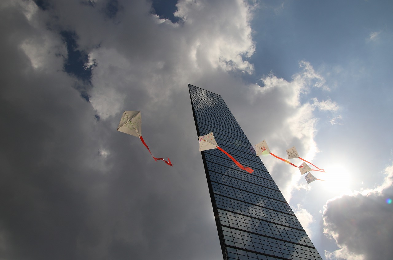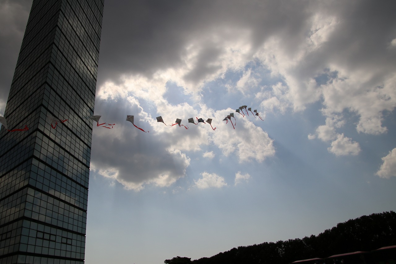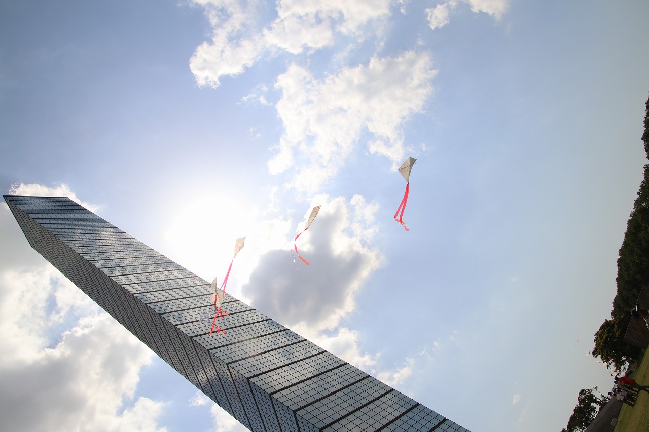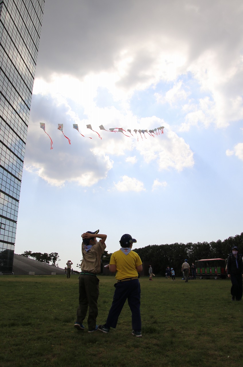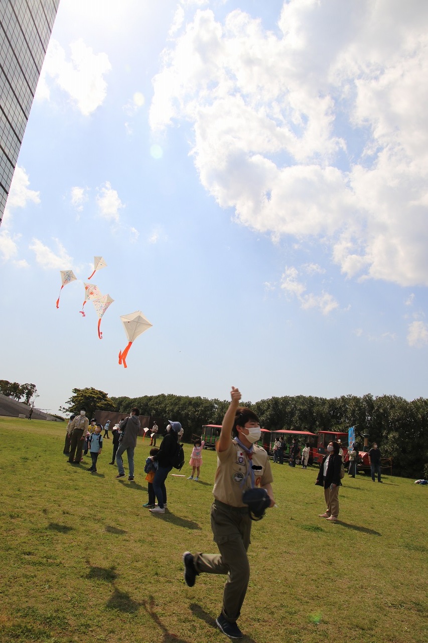 個人で凧を上げているときはあまり風がなく走らないと凧が上がりませんでしたが・・・