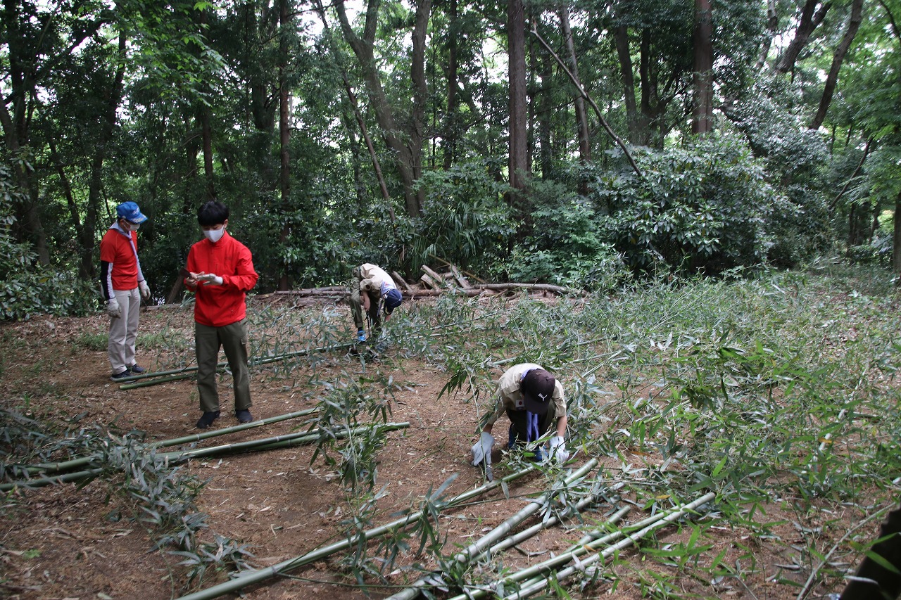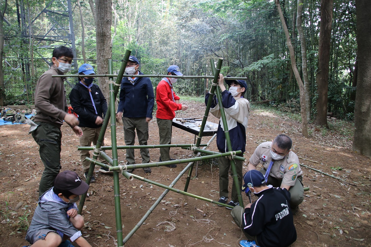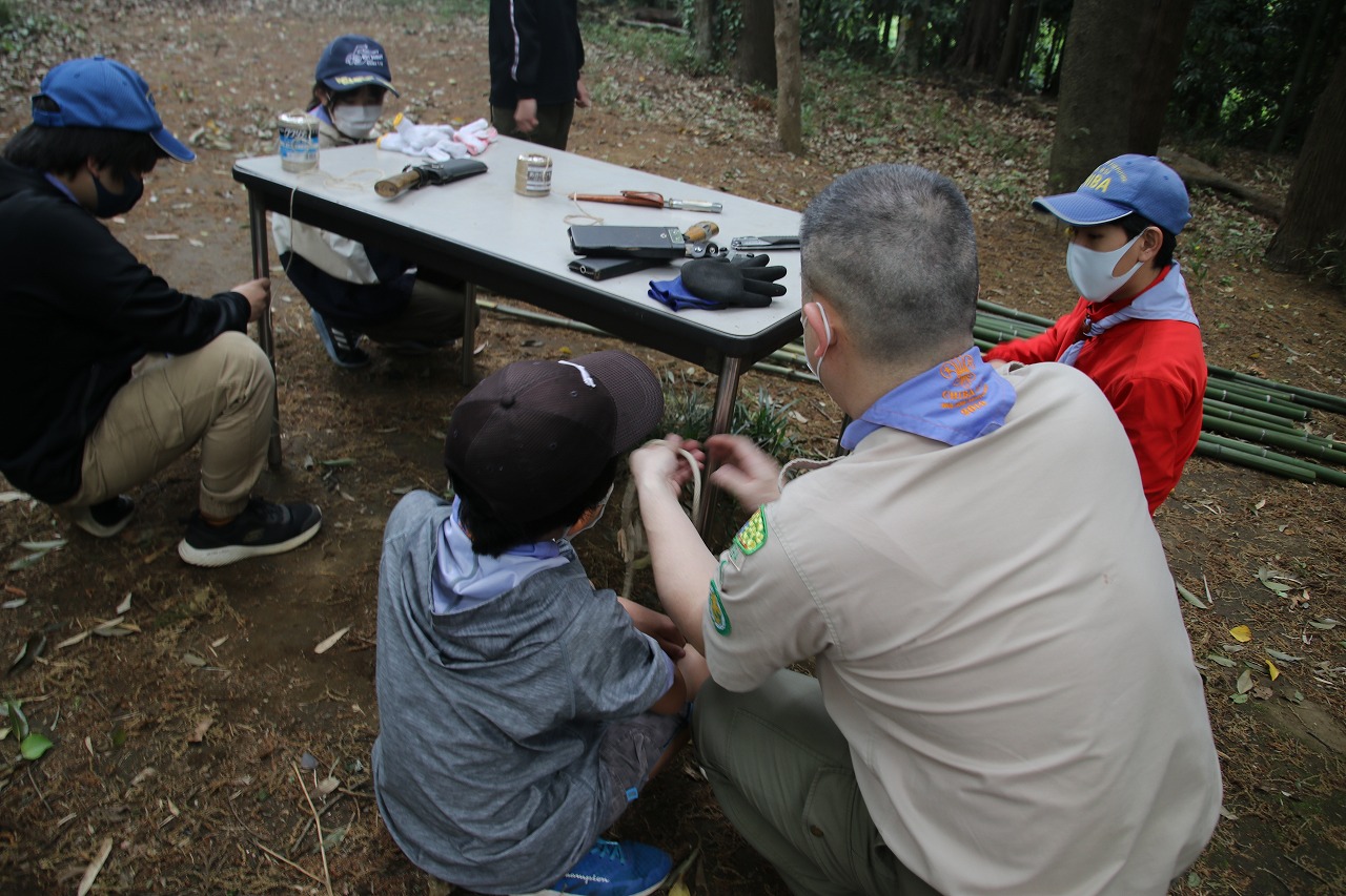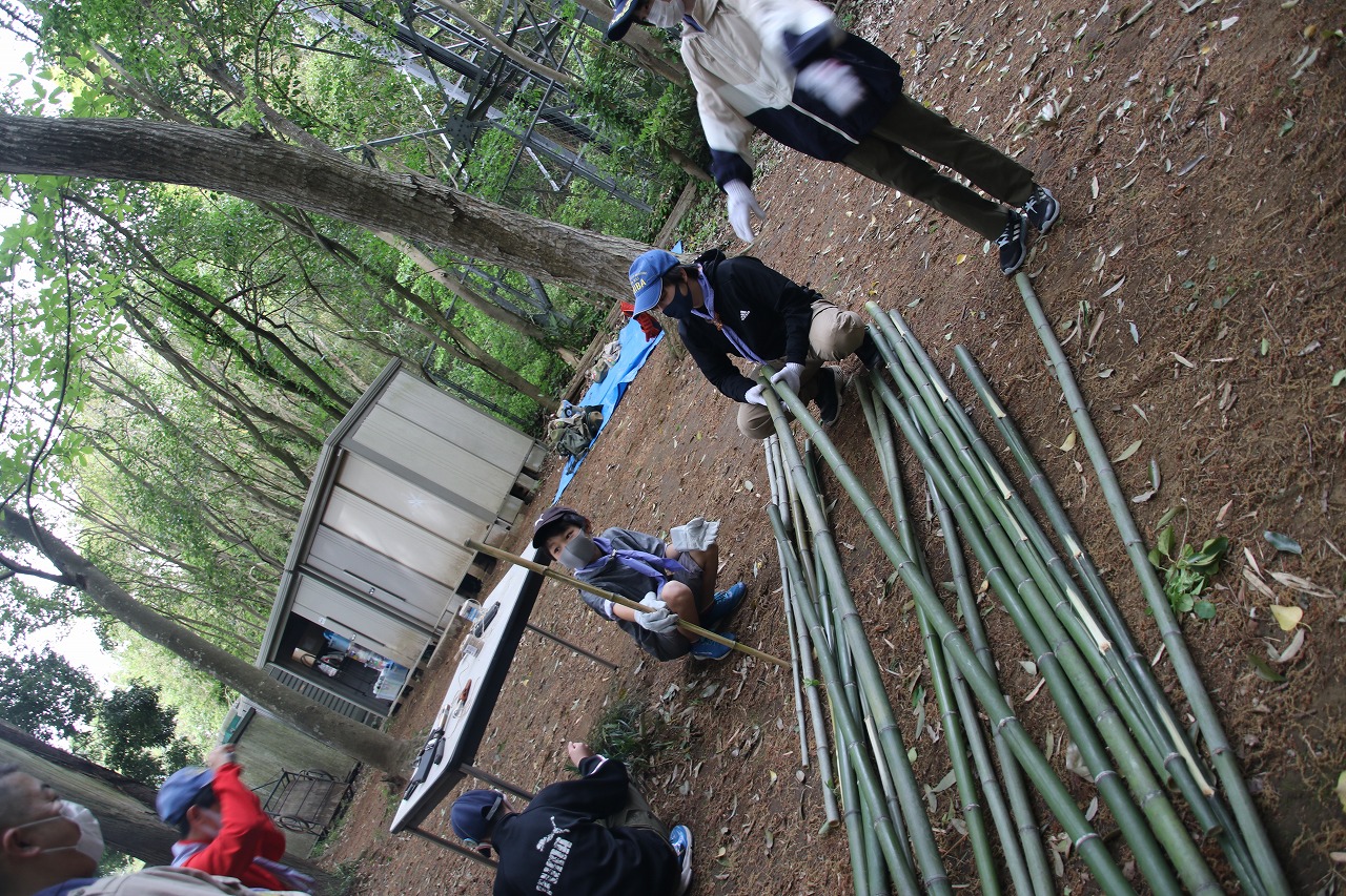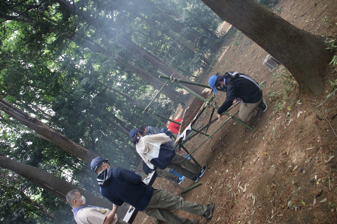 ボーイスカウト 2021.4.25 ボーイ隊 立ちかまど作成 投稿者: masako0615 投稿日: 2021年4月25日 大宮キャンプ場に生えている竹を切り出し、立ちかまど制作!ノコギリを使って竹を切り、ナタで葉を刈り落とし、巻き結びを使って組み立てました。午前中のみの活動のため、組んだ立ちかまどで簡単にたい焼きとウィンナーを温めて本日の活動は終了です。今年初の立ちかまどの出来は如何に? ぐらついていても、補強補強を繰り返し、火入れができる状態になりました!カブから上がった2名には盛沢山の内容でした☆ 共有: Facebook で共有 (新しいウィンドウで開きます) Facebook LinkedIn でシェア (新しいウィンドウで開きます) LinkedIn いいね 読み込み中…