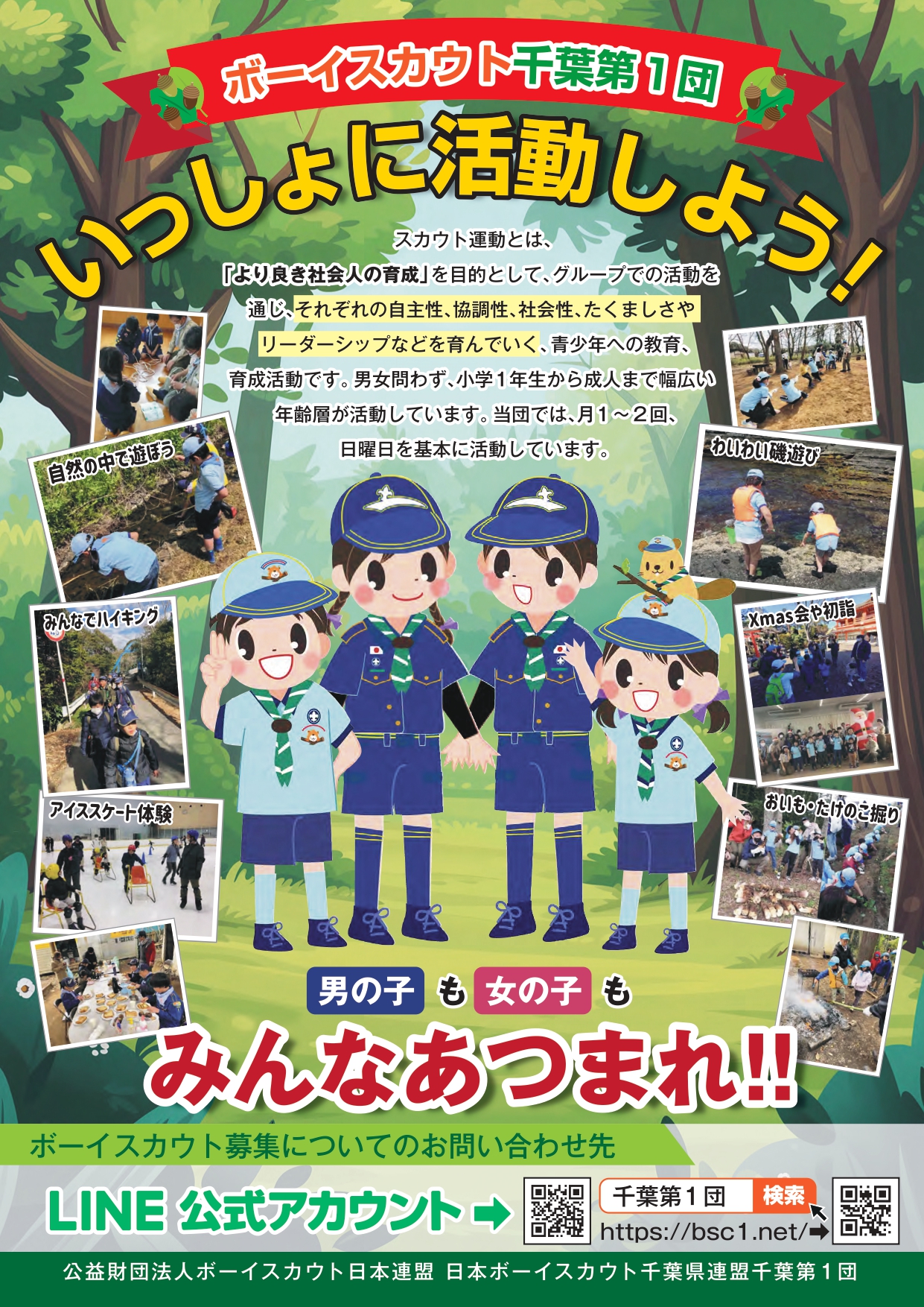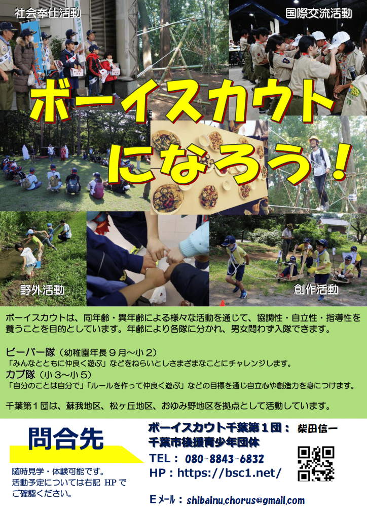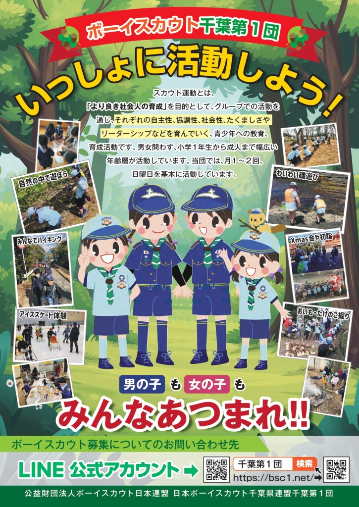 カブスカウト、ビーバースカウト、ベンチャー、ベンチャースカウト、ボーイスカウト、ローバースカウト、団 ボーイスカウト募集中!! 投稿者: 野村茂樹 投稿日: 2021年7月1日2025年2月28日 ボーイスカウトに入って、自然の中で仲間とともに遊びませんか?特に年齢の異なる仲間たちと活動することは、お子様のコミュニケーション能力が醸成され社会に出て多いに役に立ちます。 共有: Facebook で共有 (新しいウィンドウで開きます) Facebook LinkedIn でシェア (新しいウィンドウで開きます) LinkedIn いいね 読み込み中…