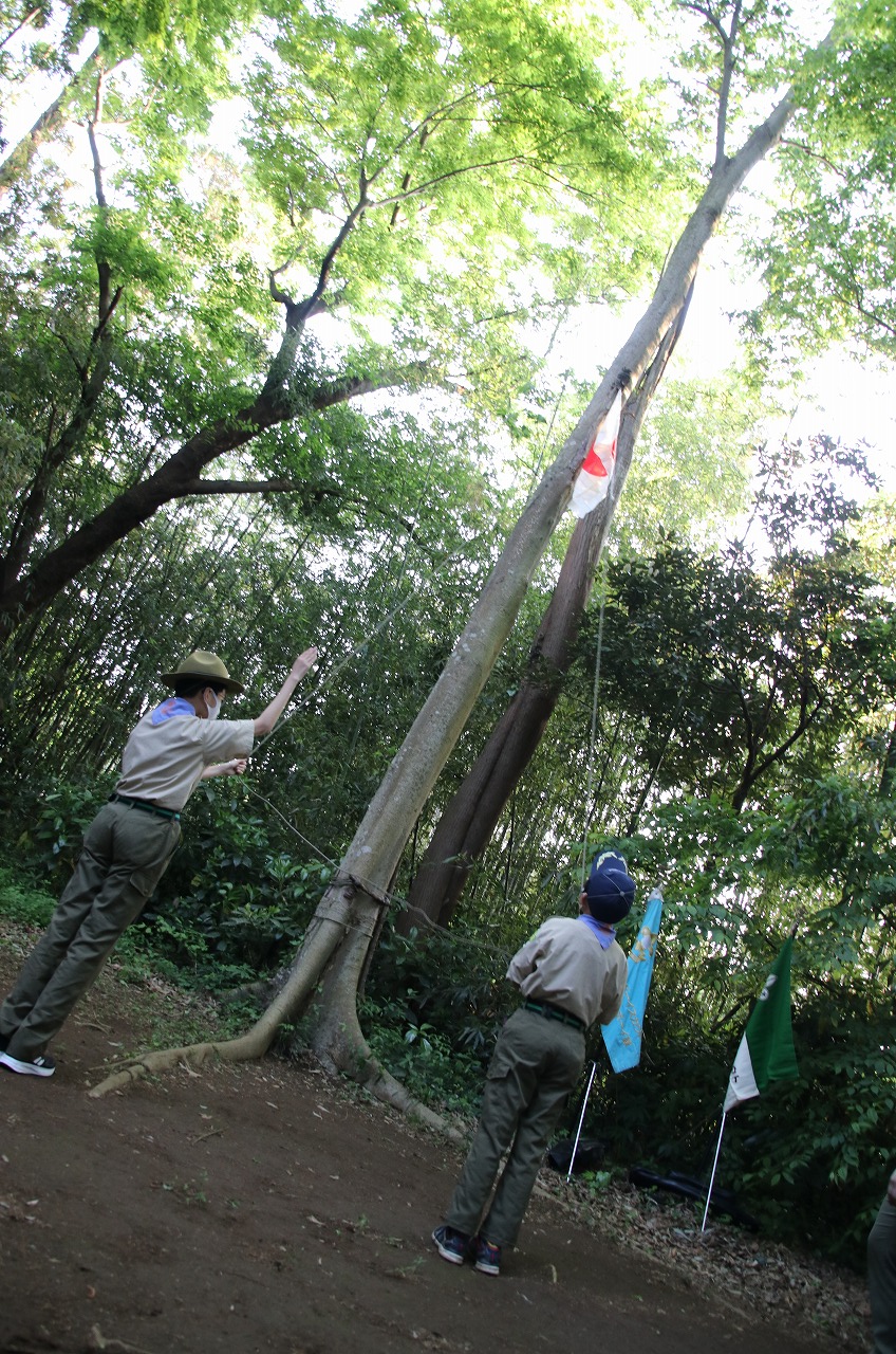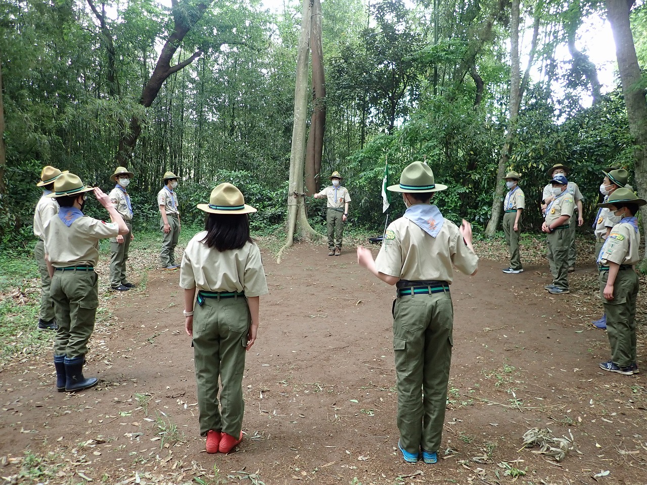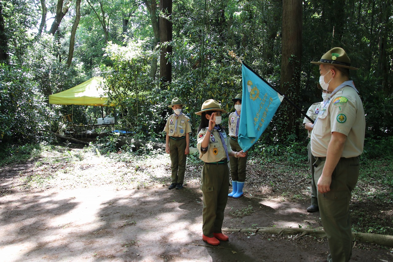 二日目は入隊式を行い、午後はすぐ近くにある6団さんの野営場の見学に行きました。