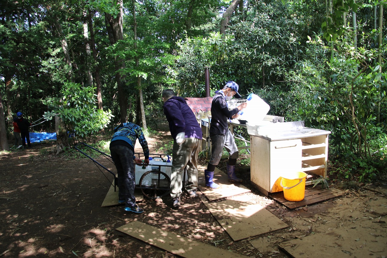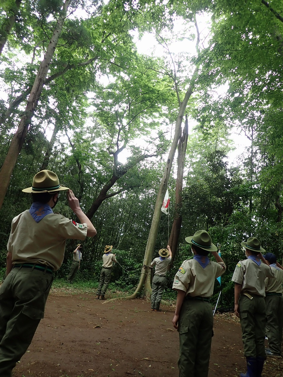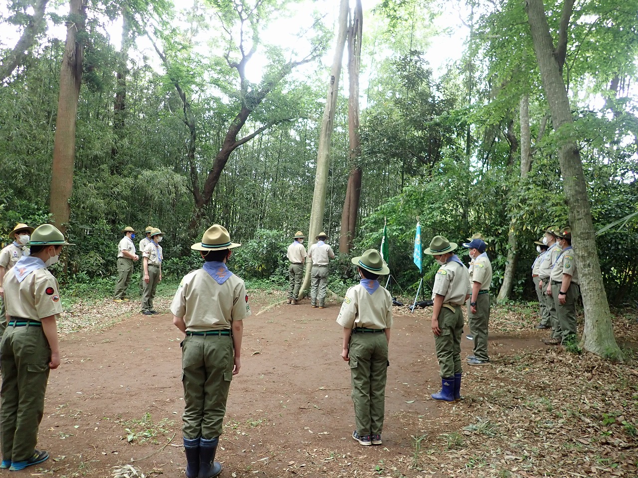 二日目は入隊式を行い、午後はすぐ近くにある6団さんの野営場の見学に行きました。