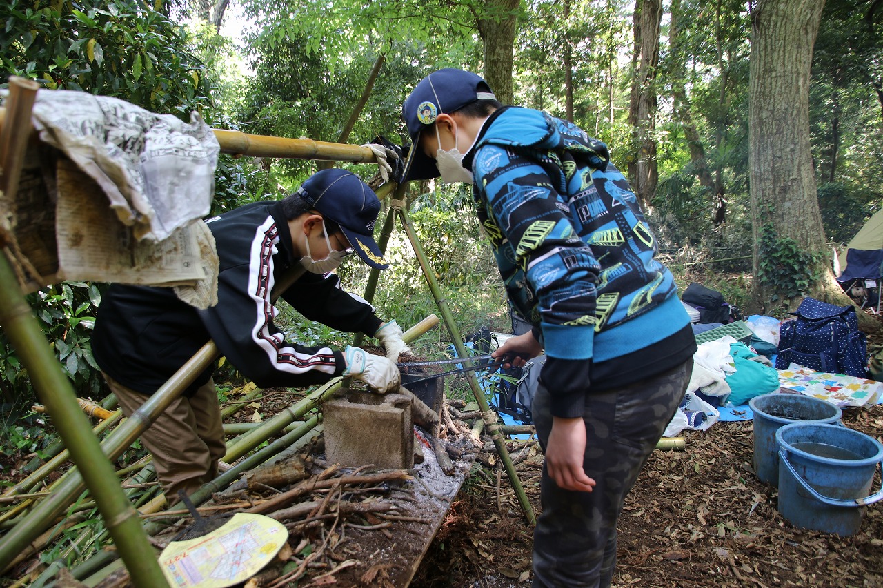 ボーイ隊、初めての1泊以上の野営訓練です。