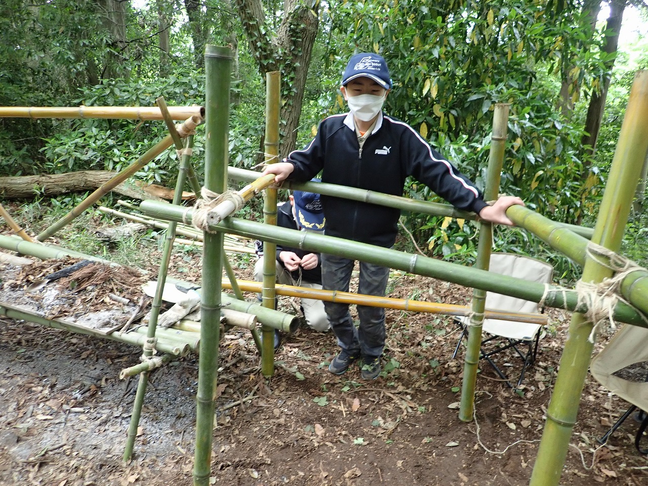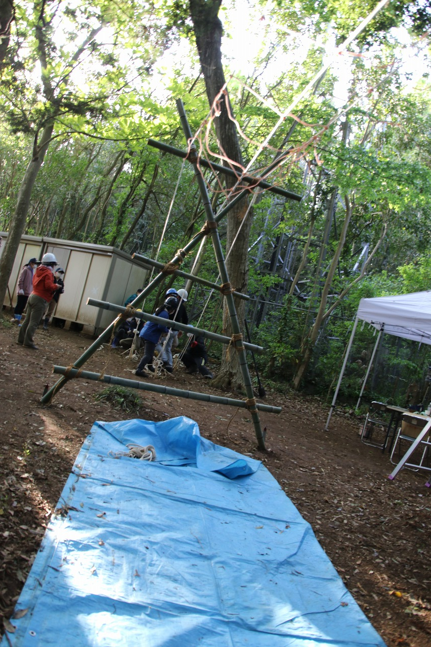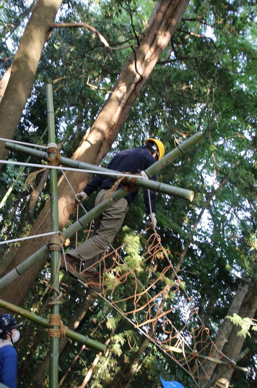 (パイオニアリング・・・ロープと円材を使い縛りと結びを駆使して工作物を作る)
