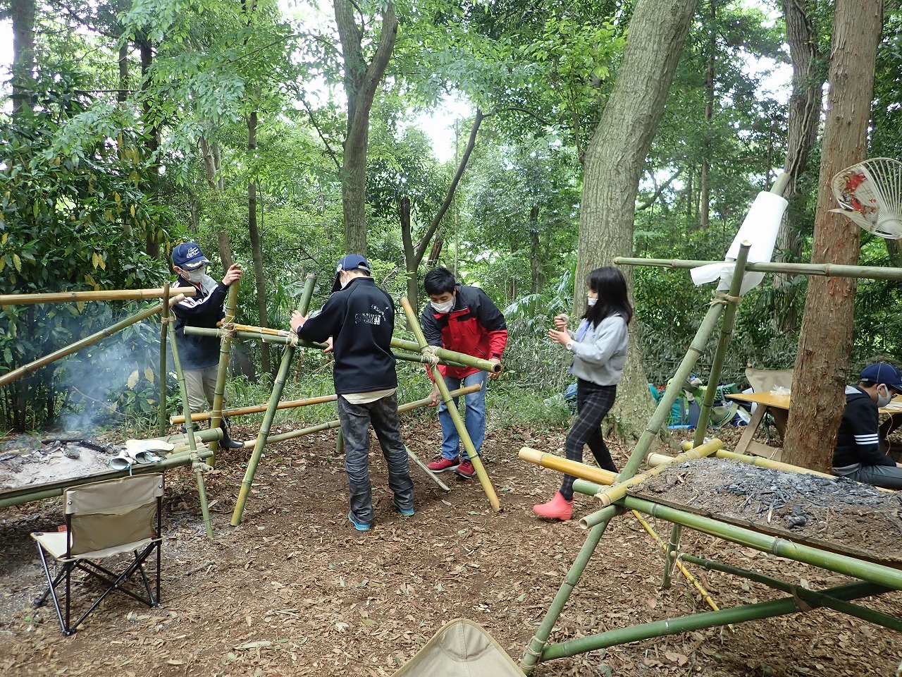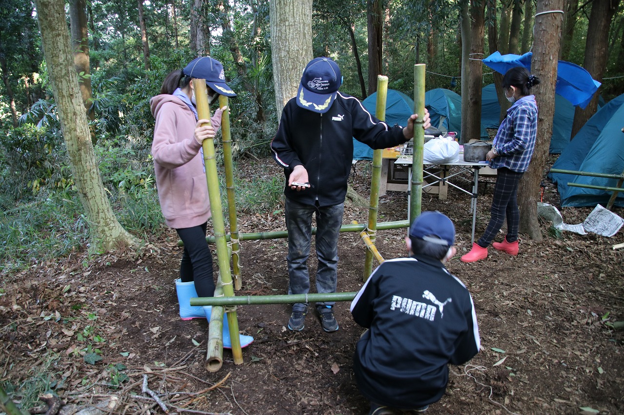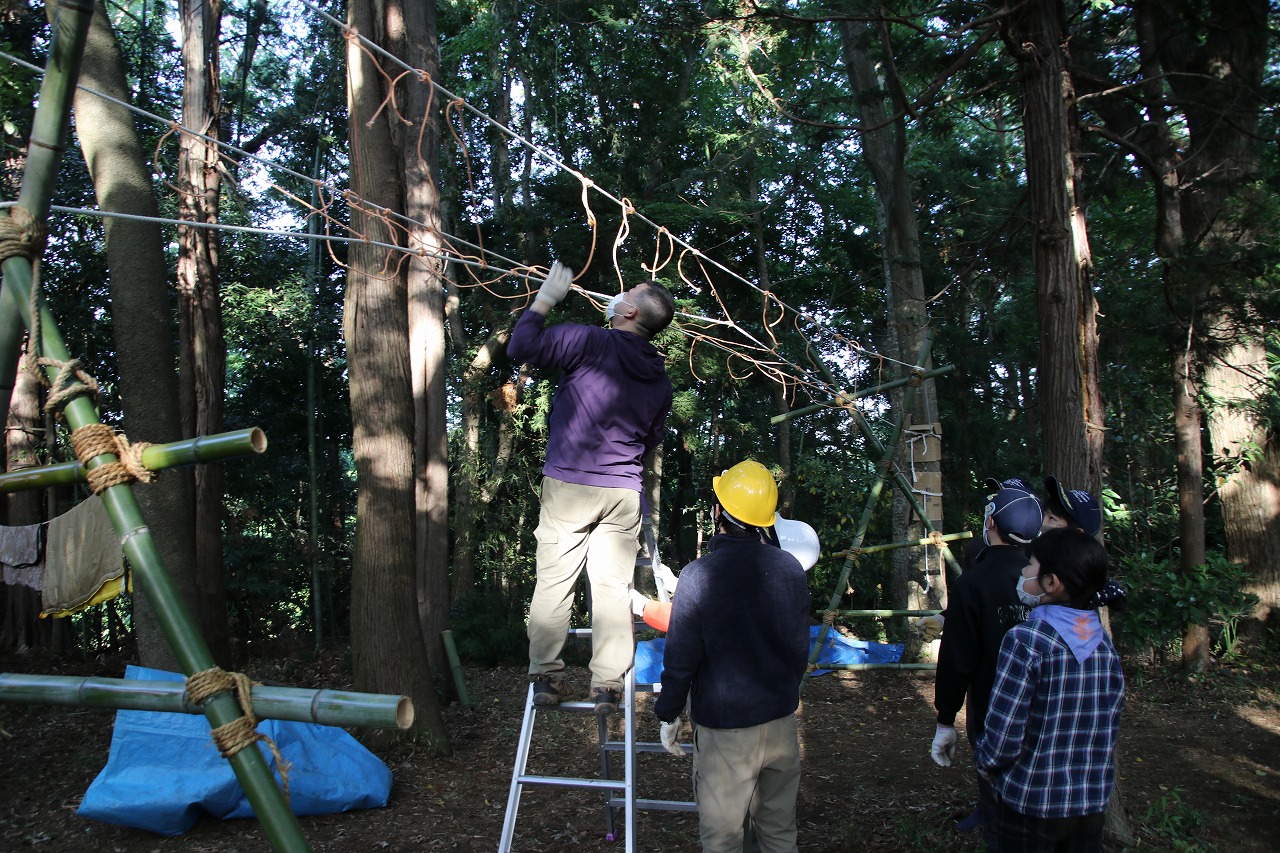 (パイオニアリング・・・ロープと円材を使い縛りと結びを駆使して工作物を作る)