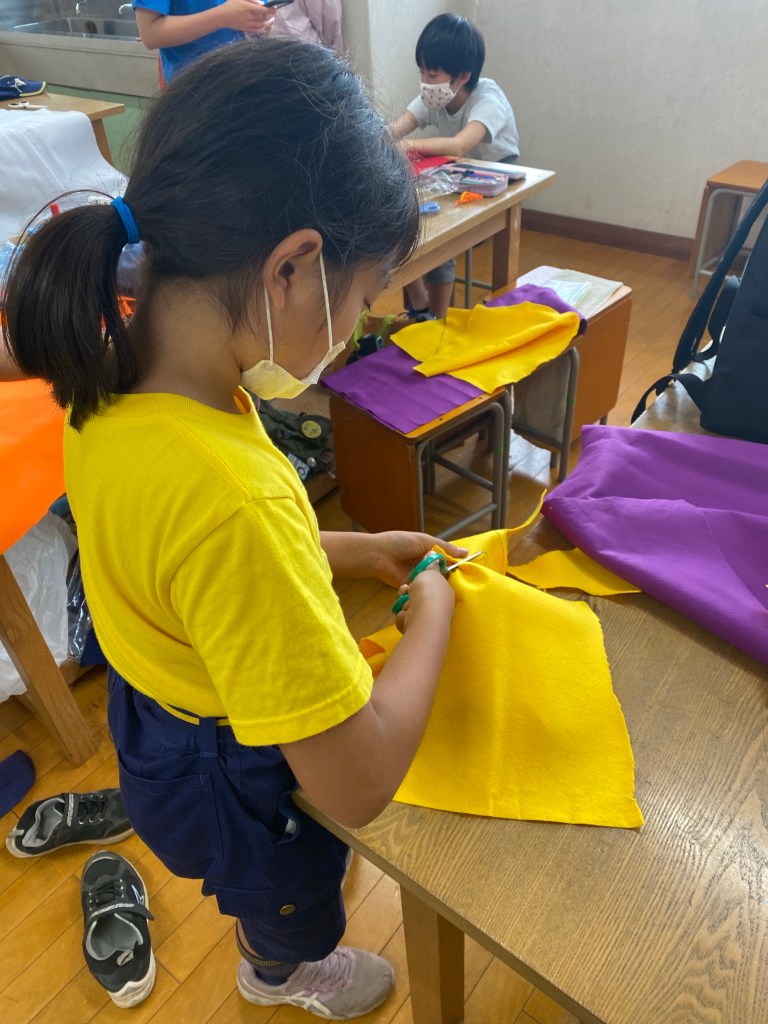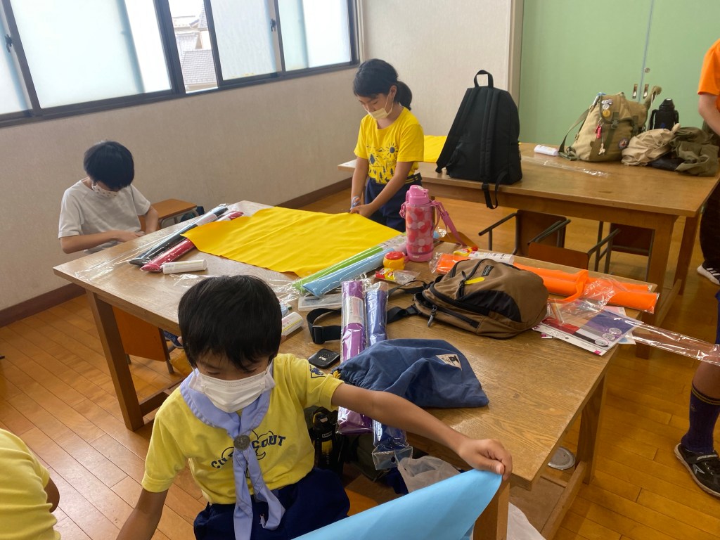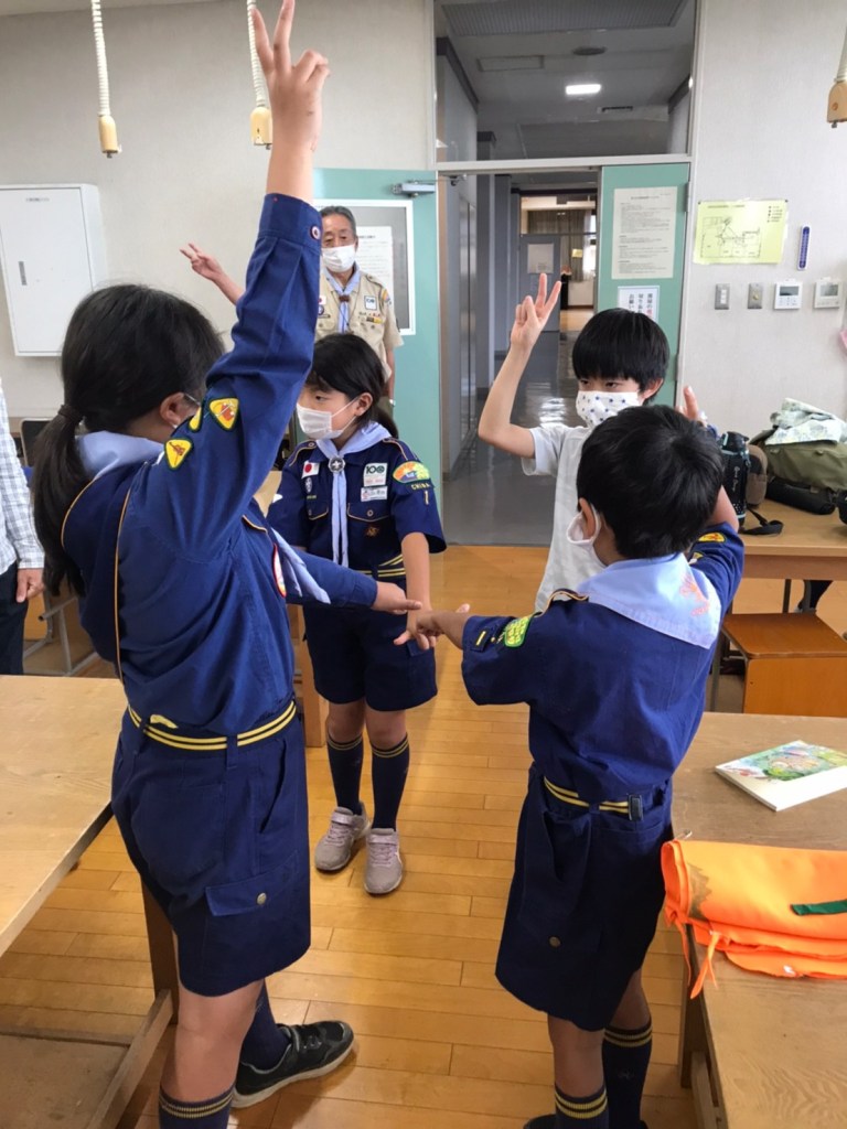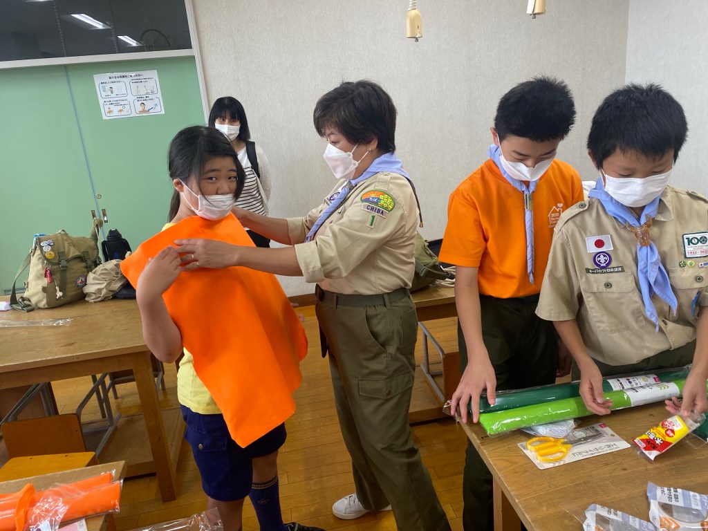 来週23日団ハロウィンパーティー、30日地区ドッジボール大会を控えて、松ヶ丘公民館、公園にて準備のため隊集会を開きました。午前中は近くの公園にてドッジボールの練習をしました。体験、見学者2人が参加、そしてボーイ隊から4人参加でいつもよりにぎやかに楽しく練習ができました。今年は5年女子1人ですので戦力的には厳しそうそうでずが精一杯頑張れれば良いと思います。練習後皆でゲーム。そして午後は公民館に移動し来週計画されている団ハロウィンパーティーの衣装作りをしました。雨にも降られずあっという間に時間が過ぎました。