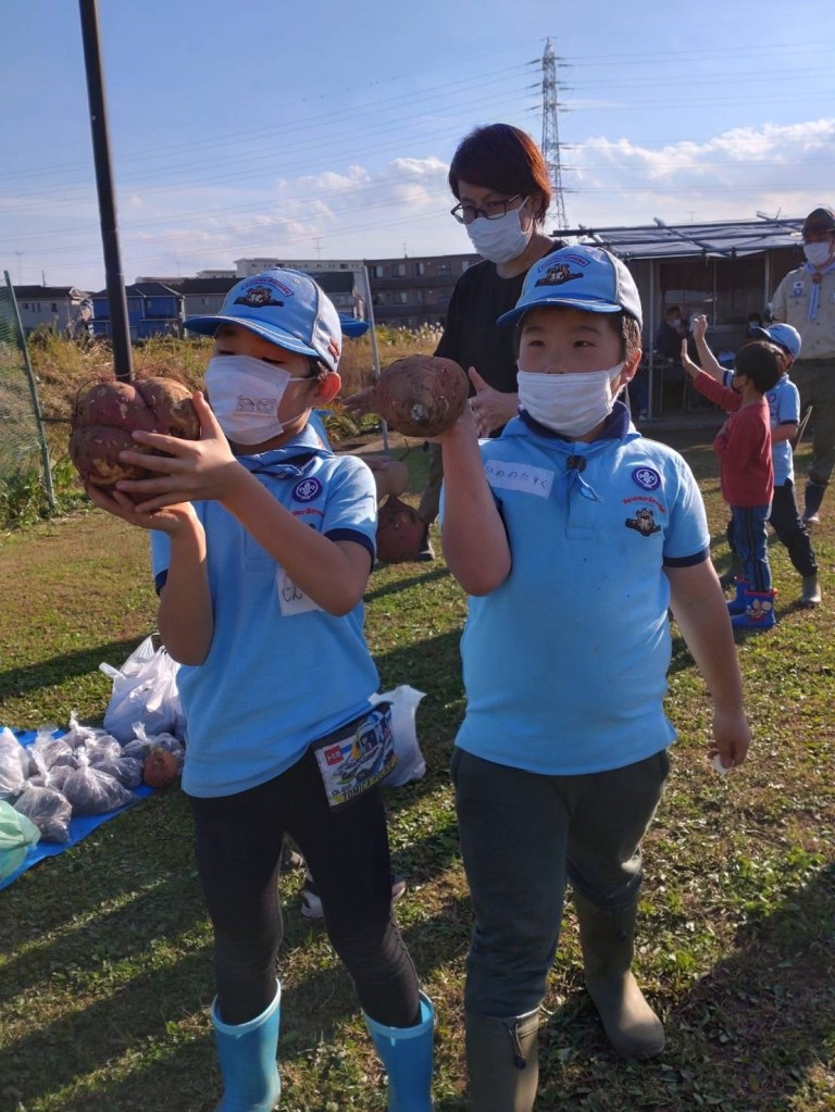 未分類 2022.11.6 ビーバーサツマイモ掘り 投稿者: 野村茂樹 投稿日: 2022年11月6日2022年11月6日 秋晴れのなか、千葉地区のビーバー隊でさつま芋掘りを楽しみました。スカウトの顔と同じくらいの芋もあり、泥んこになりながら格闘してきました。次の活動では、今日掘ったさつま芋で焼き芋をやるぞ! 共有: Facebook で共有 (新しいウィンドウで開きます) Facebook LinkedIn でシェア (新しいウィンドウで開きます) LinkedIn いいね 読み込み中…