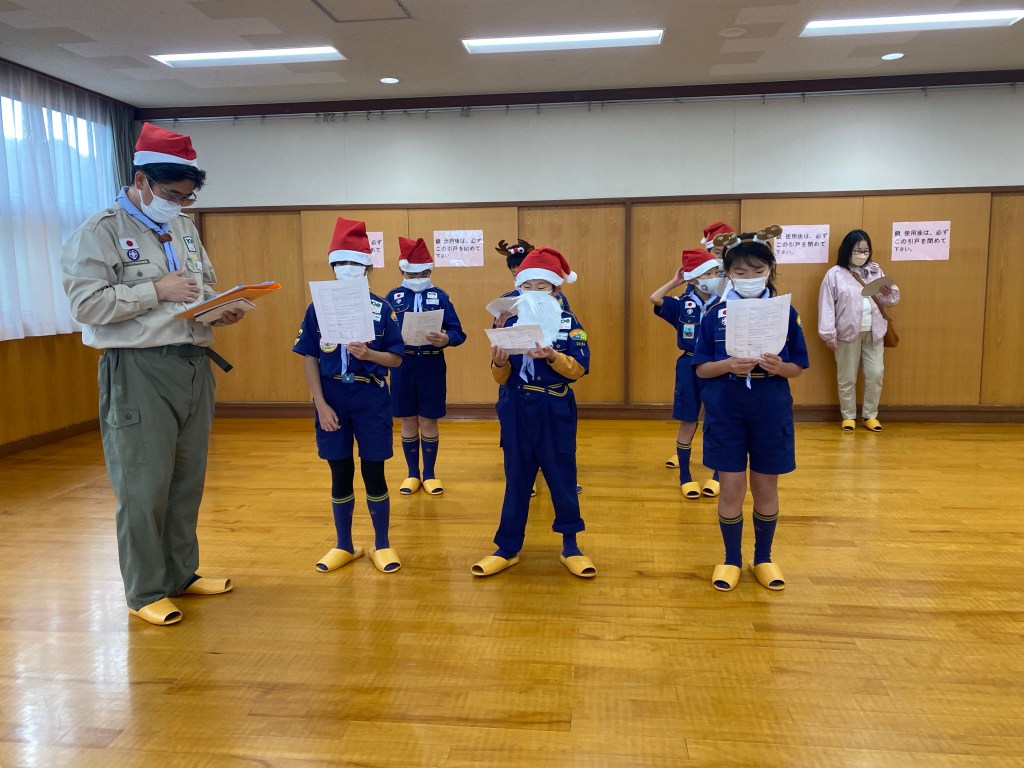 未分類 2022.12.11カブ隊 隊集会、入隊式、クリスマス準備 投稿者: 野村茂樹 投稿日: 2022年12月14日2022年12月14日 来週に控えた団クリスマス会準備の為隊集会を松ヶ丘公民館にて実施しました。今日新たに1人入隊式を行いました。制服は昨年ボーイに上がったスカウトのものを使用したので徽章類を外すのが間に合いませんでした。新たな仲間が増えました。先週クリスマス会の出し物を考え中国四国地方の観光案内人というテーマにそって必要な道具作り、そしてスタンツの練習をしました。又新たなソングを覚えました。お昼休みは公園に出て、サッカーをして体を動かしました。来週上手く出来るかな? 共有: Facebook で共有 (新しいウィンドウで開きます) Facebook LinkedIn でシェア (新しいウィンドウで開きます) LinkedIn いいね 読み込み中…