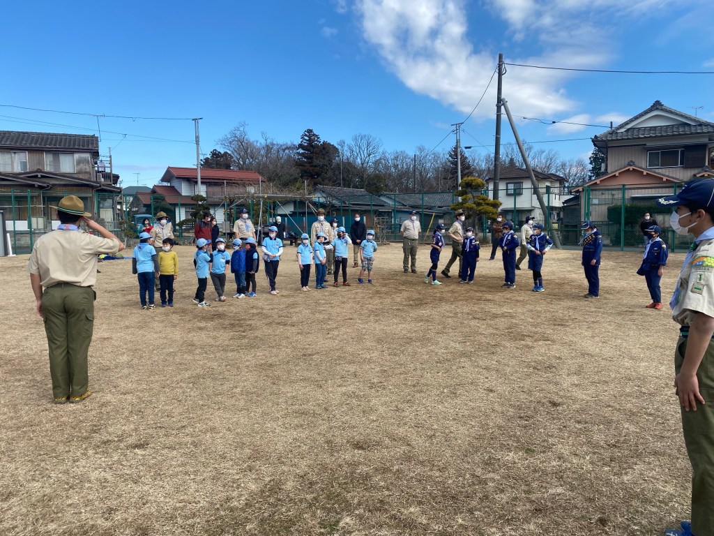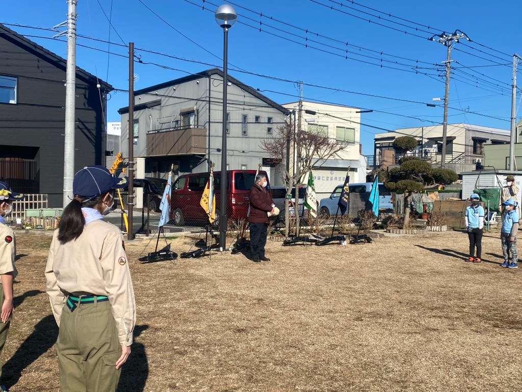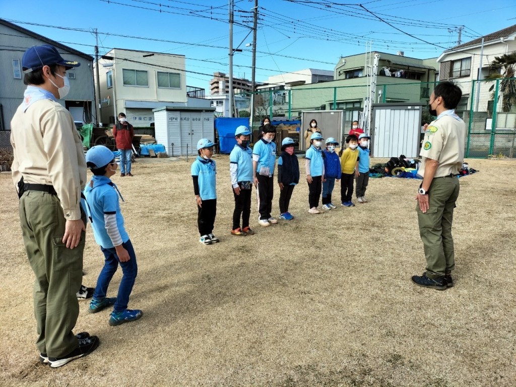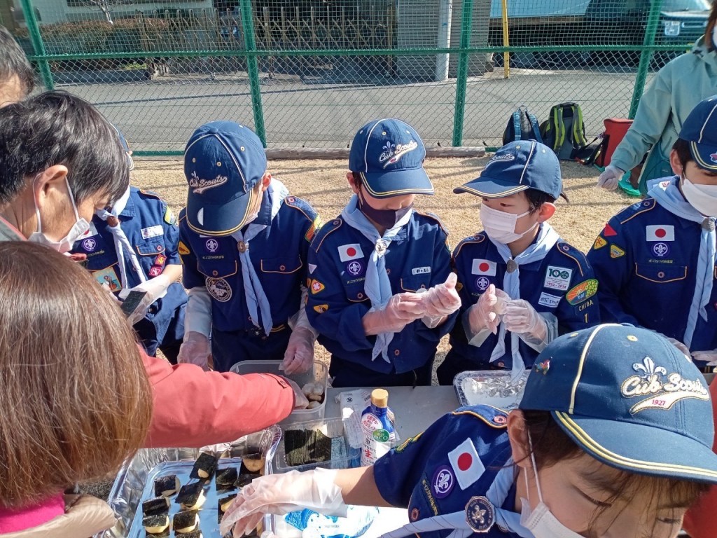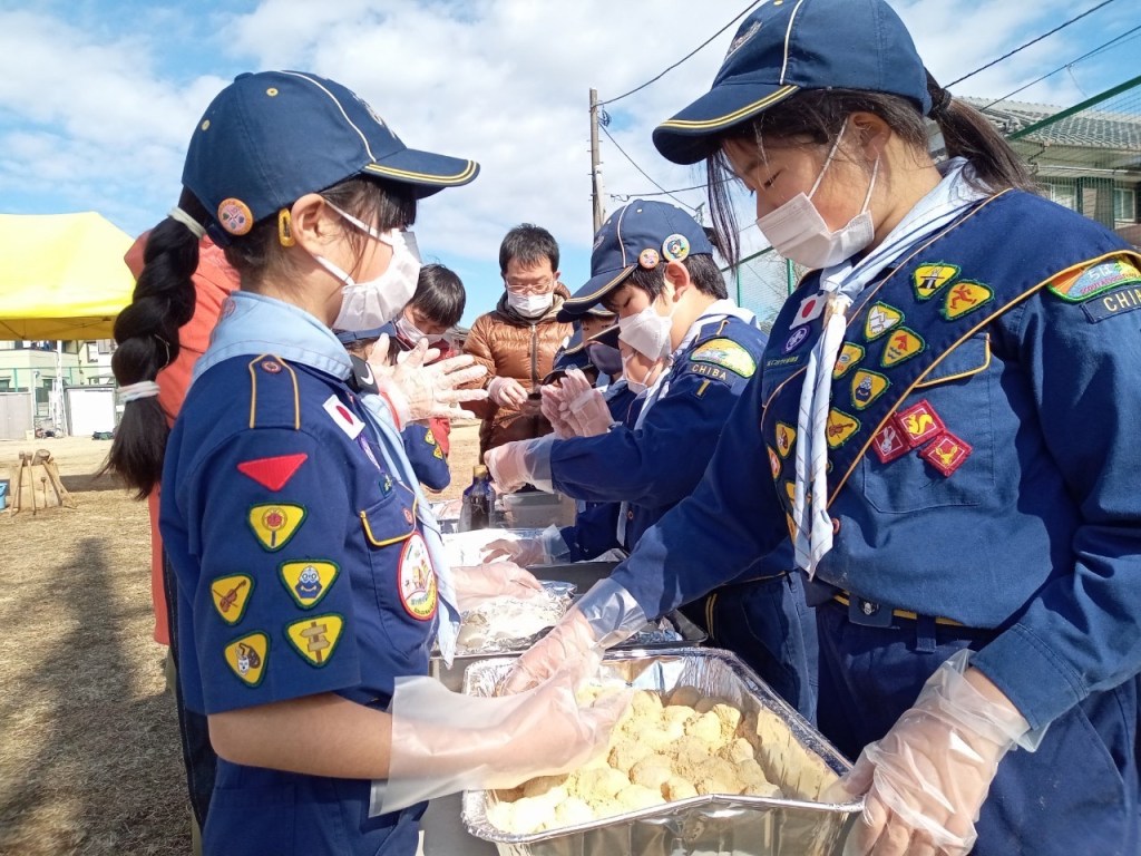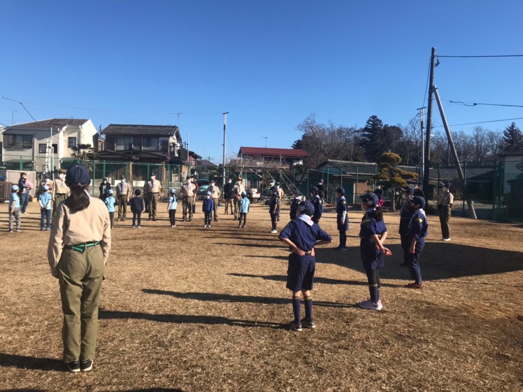 今年初の団行事、新年餅つき大会を川戸市民の森に隣接する川戸手作り公園にて実施しました。2年振りの餅つき大会、心配された天気は寒かったですが。青空に恵まれました。開会式後、育成会、団委員の皆さんが餅つきの準備、ビーバー隊は楽しいゲーム、カブ隊は公園清掃を行い、餅つき準備ができた段階で各隊スカウトは餅つき体験をしました。そして、カブ隊はノリ、きな粉餅、ボーイ隊はお汁粉、ベンチャー隊はお雑煮とそれぞれ準備して、自分たちでついたお餅に舌鼓を打ちました。その後、長縄跳び、ドッジボール、サッカー、フリスビーなど楽しみました。今年も怪我、事故なく楽しい活動ができますように。
