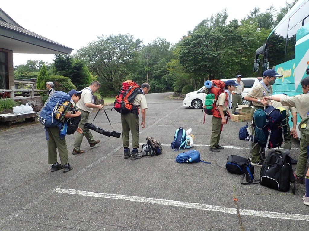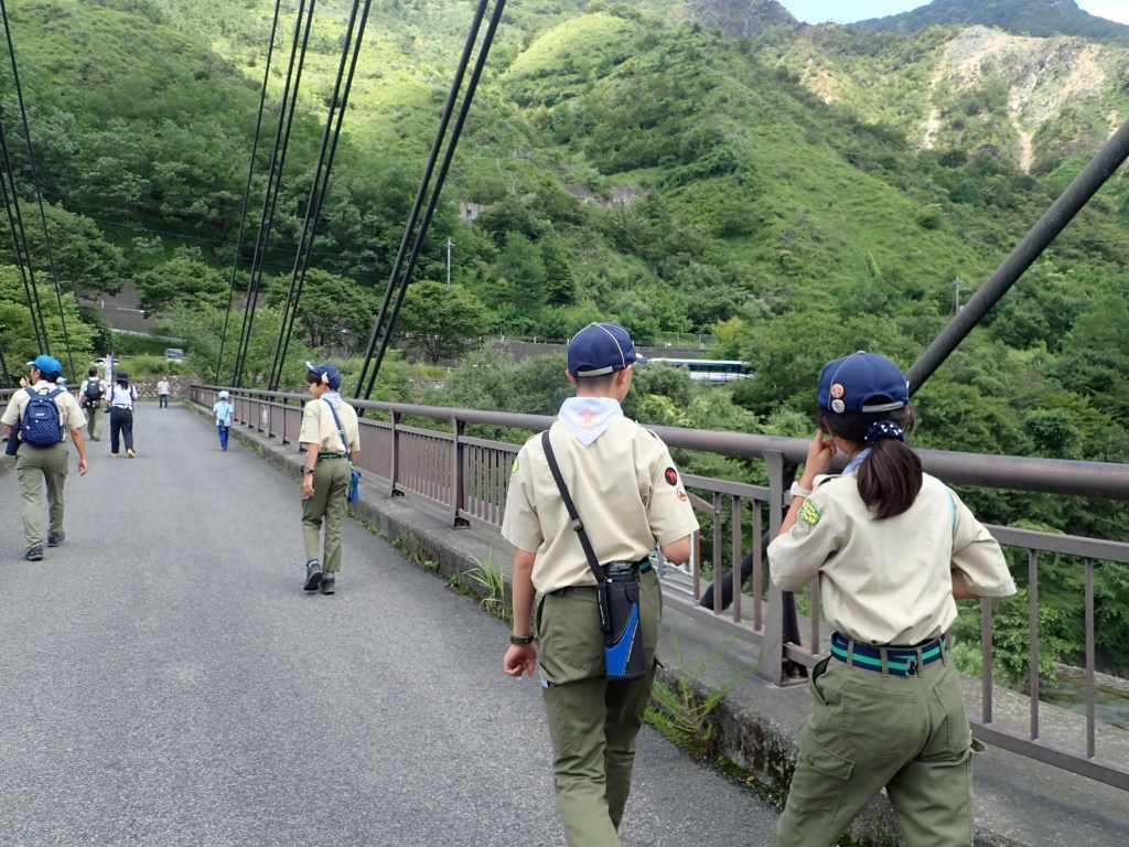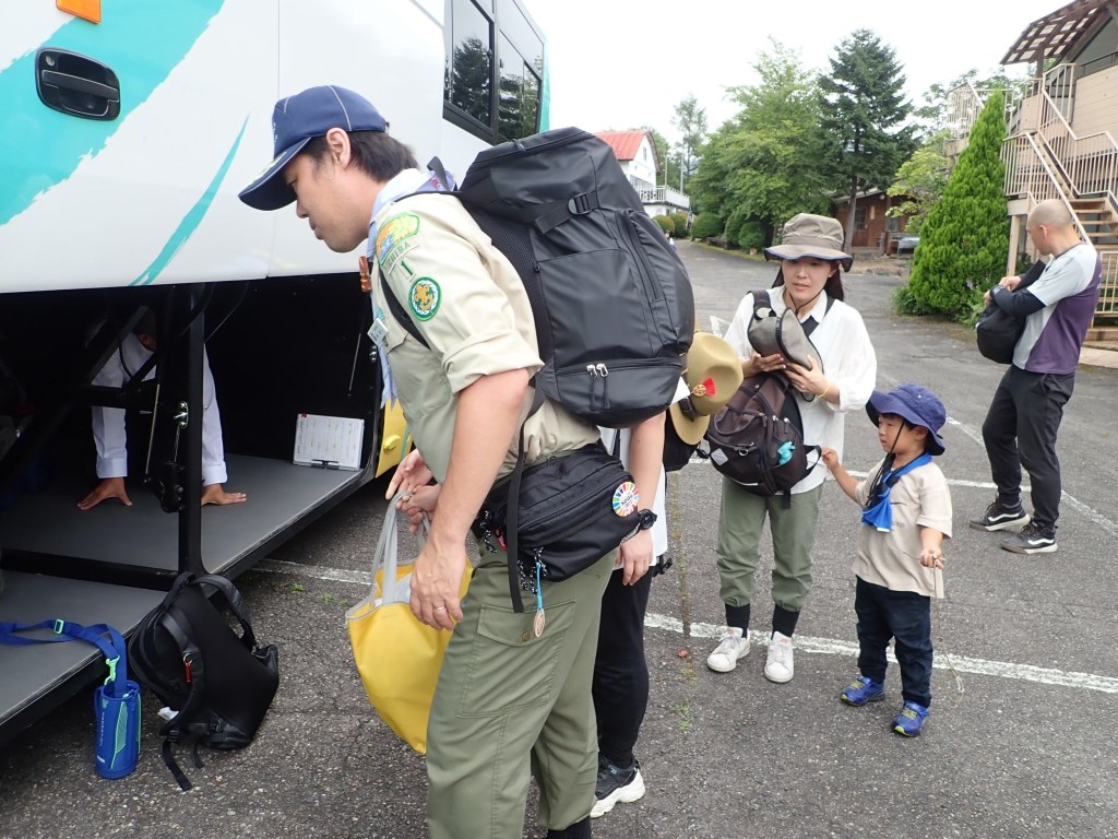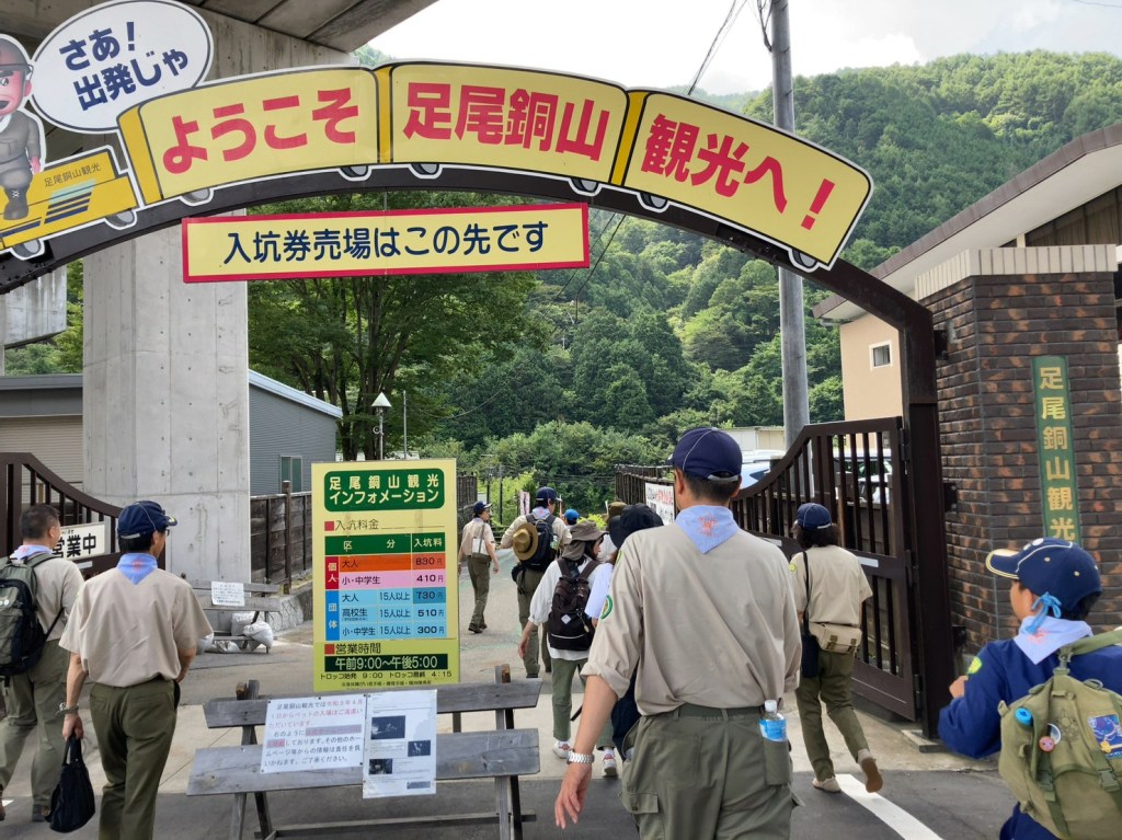 3日目は、荷物をまとめると、朝食をとり、閉村式をしてキャンプ場を後にしました。来たときと同様に、重たい自分の荷物をみんな自分で運び上げ、バスの荷物入れにしまいます。午前中は足尾銅山の見学に向かいます。体調を崩してしまったメンバーとはここでお別れでした。残念でしたけど、隊の看護師さんたちの速やかな対応のおかげで、他の人たちに大きな影響もなく、大事にならずに済みました。また一緒にキャンプに行けると良いですね。
