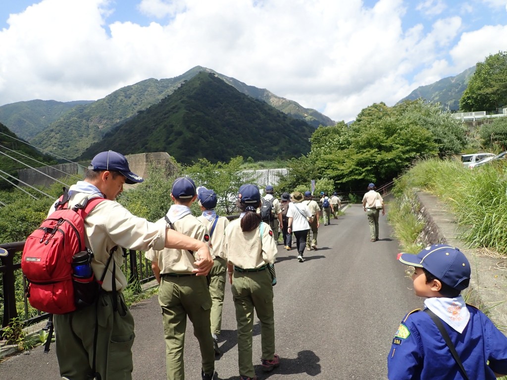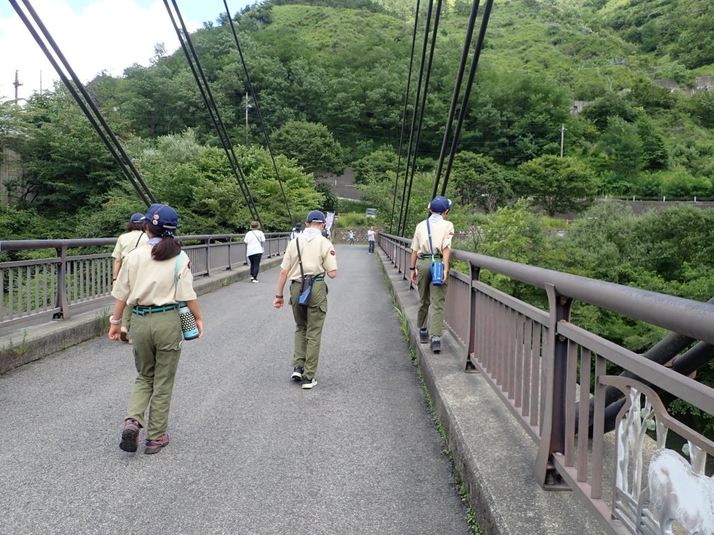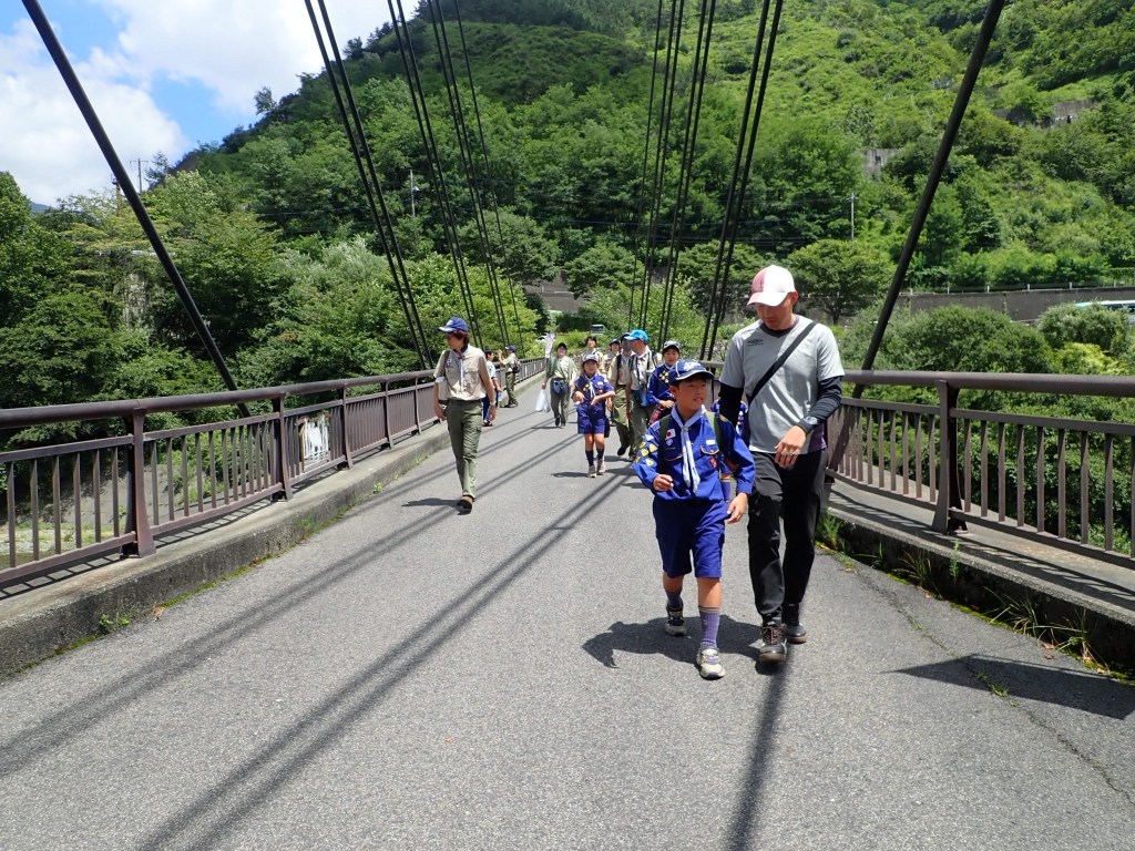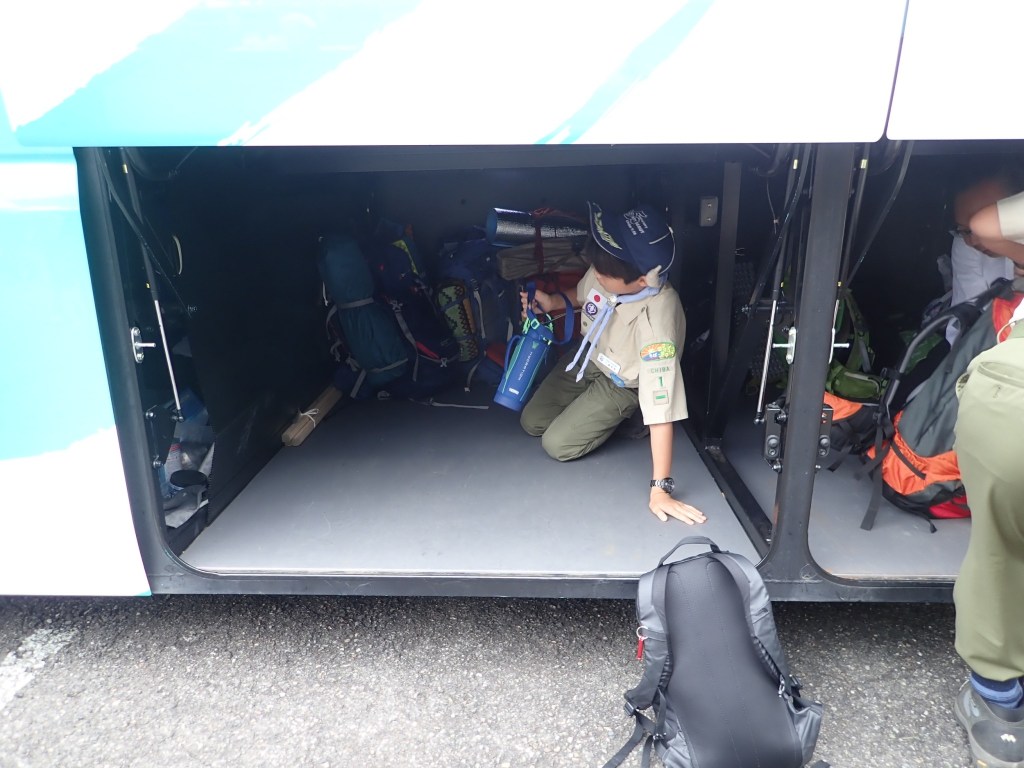 3日目は、荷物をまとめると、朝食をとり、閉村式をしてキャンプ場を後にしました。来たときと同様に、重たい自分の荷物をみんな自分で運び上げ、バスの荷物入れにしまいます。午前中は足尾銅山の見学に向かいます。体調を崩してしまったメンバーとはここでお別れでした。残念でしたけど、隊の看護師さんたちの速やかな対応のおかげで、他の人たちに大きな影響もなく、大事にならずに済みました。また一緒にキャンプに行けると良いですね。