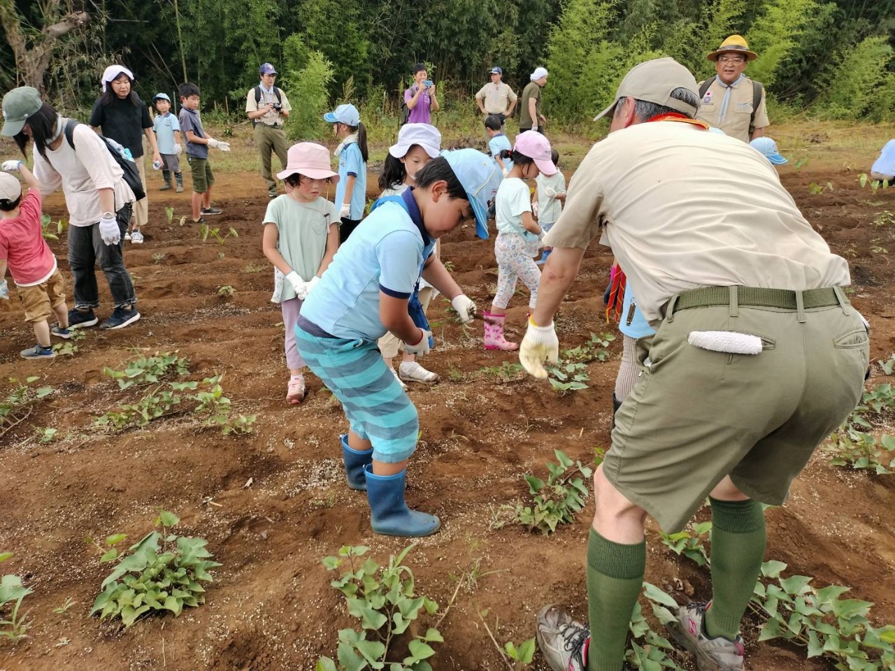 未分類 2023.8.13 ビーバー隊 合同隊集会(畑の草取り) 投稿者: airtrek826 投稿日: 2023年8月17日2023年8月17日 今回は、他の団のビーバースカウトのお友だちと一緒に、千葉6団さんの畑の草むしりを行いました。 広い畑に、ナス、キュウリ、エゴマ、シソ、サトイモ、サツマイモ、クリなど、いろいろな作物が茂っていました。早く食べてみたいけれど、秋の収穫までもう少しガマンです!今年もたくさん採れるといいですね。 最後は本格的なかき氷をご馳走になりました。ありがとうございました! 共有: Facebook で共有 (新しいウィンドウで開きます) Facebook LinkedIn でシェア (新しいウィンドウで開きます) LinkedIn いいね 読み込み中…
