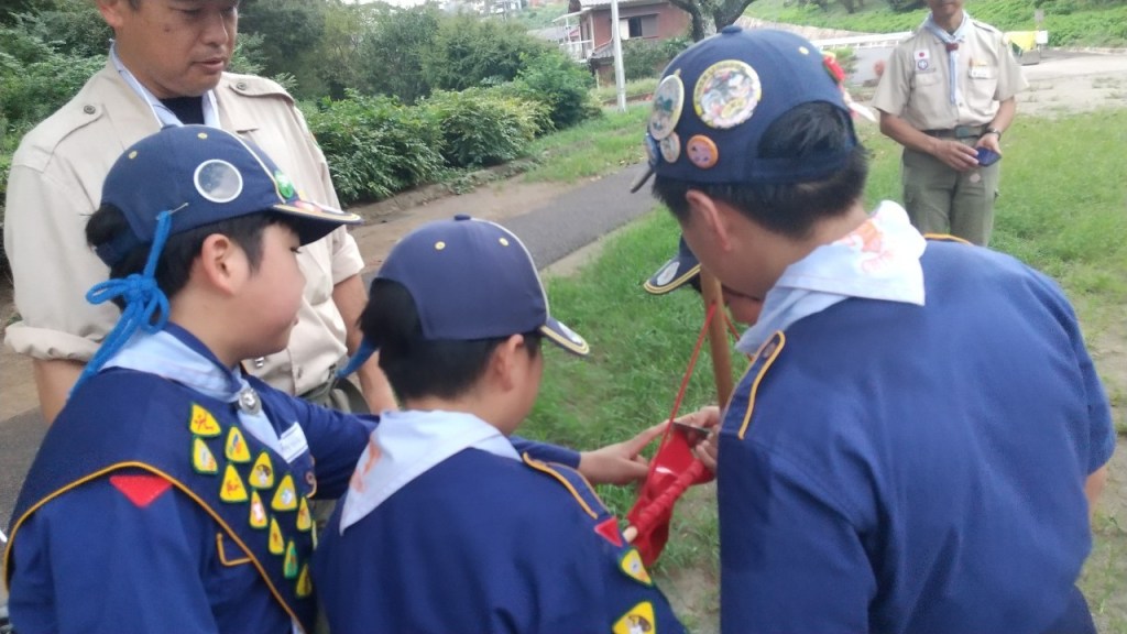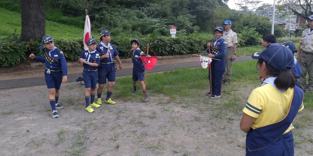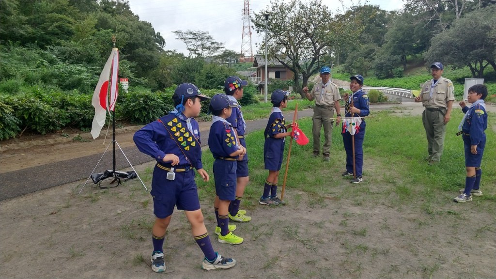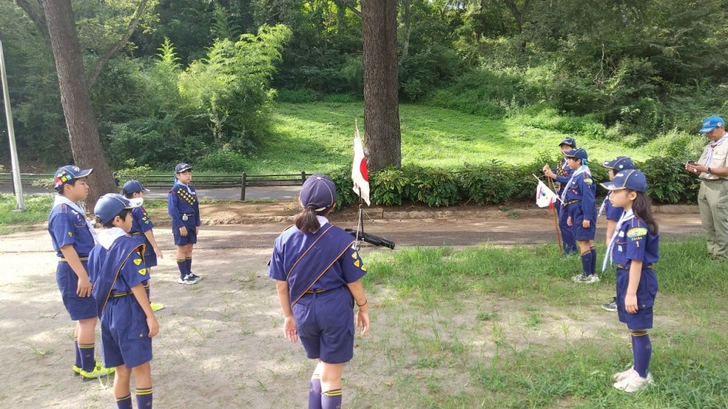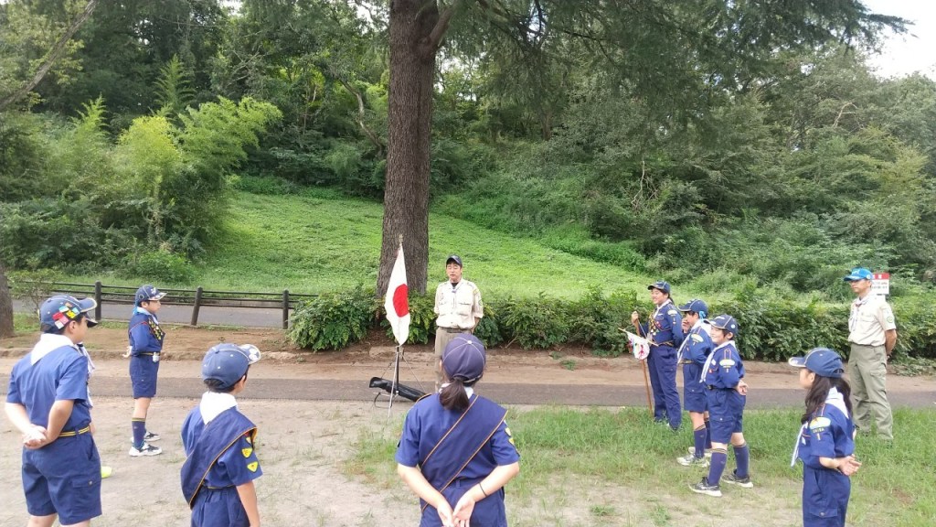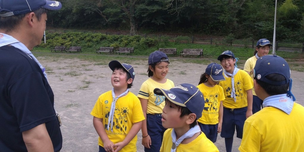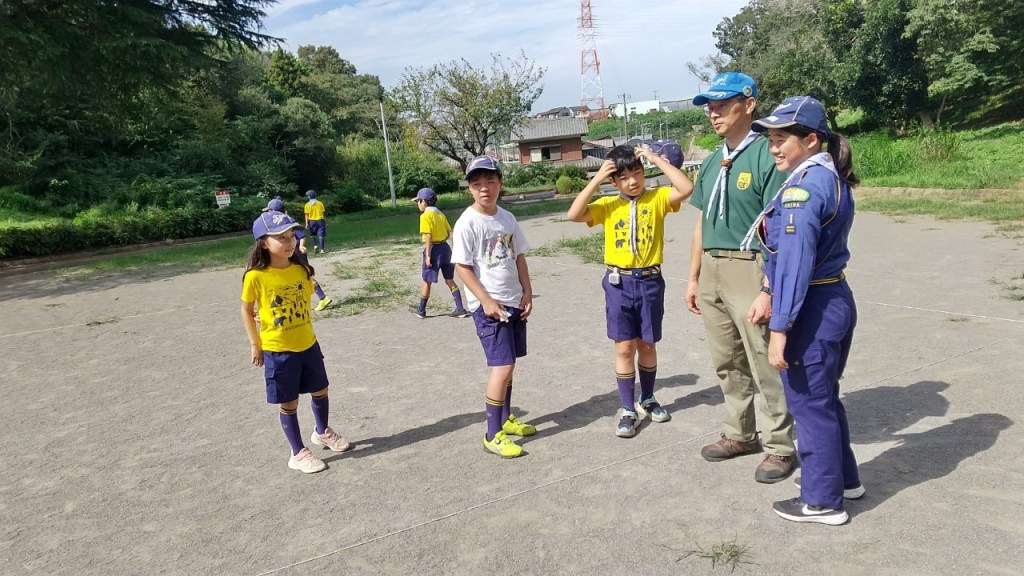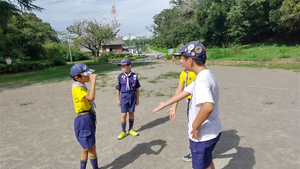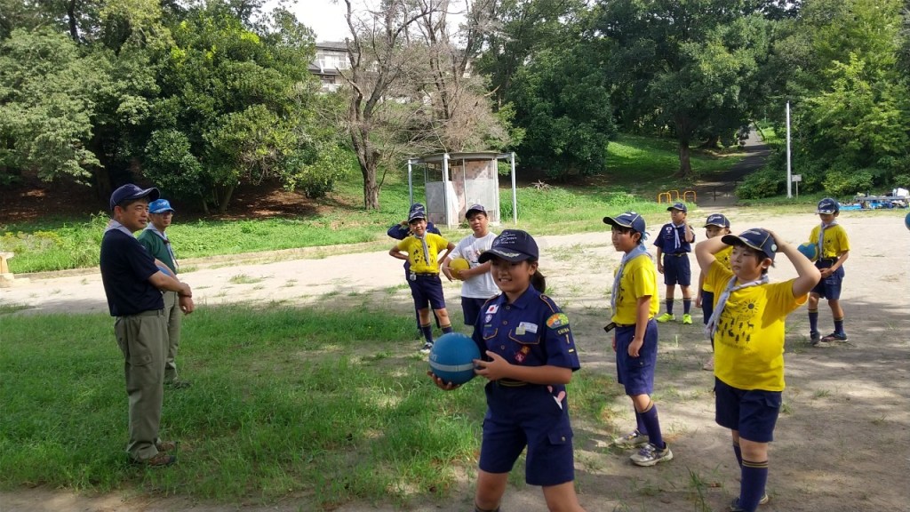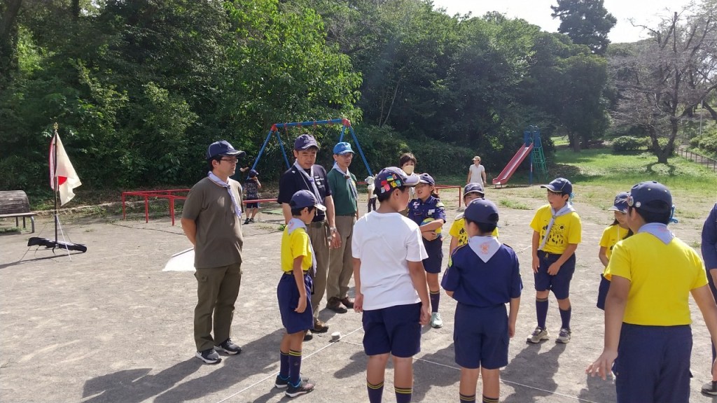 公園ジョギング3周したあと、ストレッチをして体をほぐします。皆で和になり、隊長・副隊長と細かいルール確認をしたあと、組に別れ、