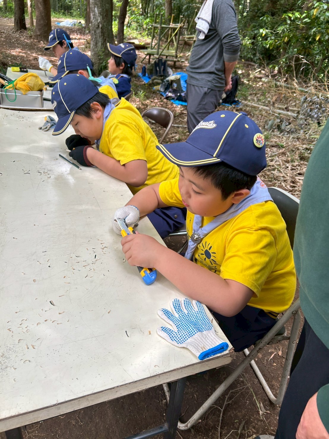 カブスカウト、ビーバースカウト 2025.5.11 ビーバー隊&カブ隊 竹工作&公園清掃 投稿者: airtrek826 投稿日: 2025年5月12日 今日はカブ隊は川戸の森の公園清掃を実施し、大宮キャンプ場までハイクで移動しました。その後、次回の隊集会に向けて、のこぎりの使い方や、ロープワークなどの練習を行いました。 ビーバースカウトは、竹を一本切り出して、そこから弓矢とけん玉を作って遊びました。弓矢の的当ても、みんなで盛り上がりながら回を重ねるごとにどんどん上達しました。 共有: Facebook で共有 (新しいウィンドウで開きます) Facebook LinkedIn でシェア (新しいウィンドウで開きます) LinkedIn いいね 読み込み中…