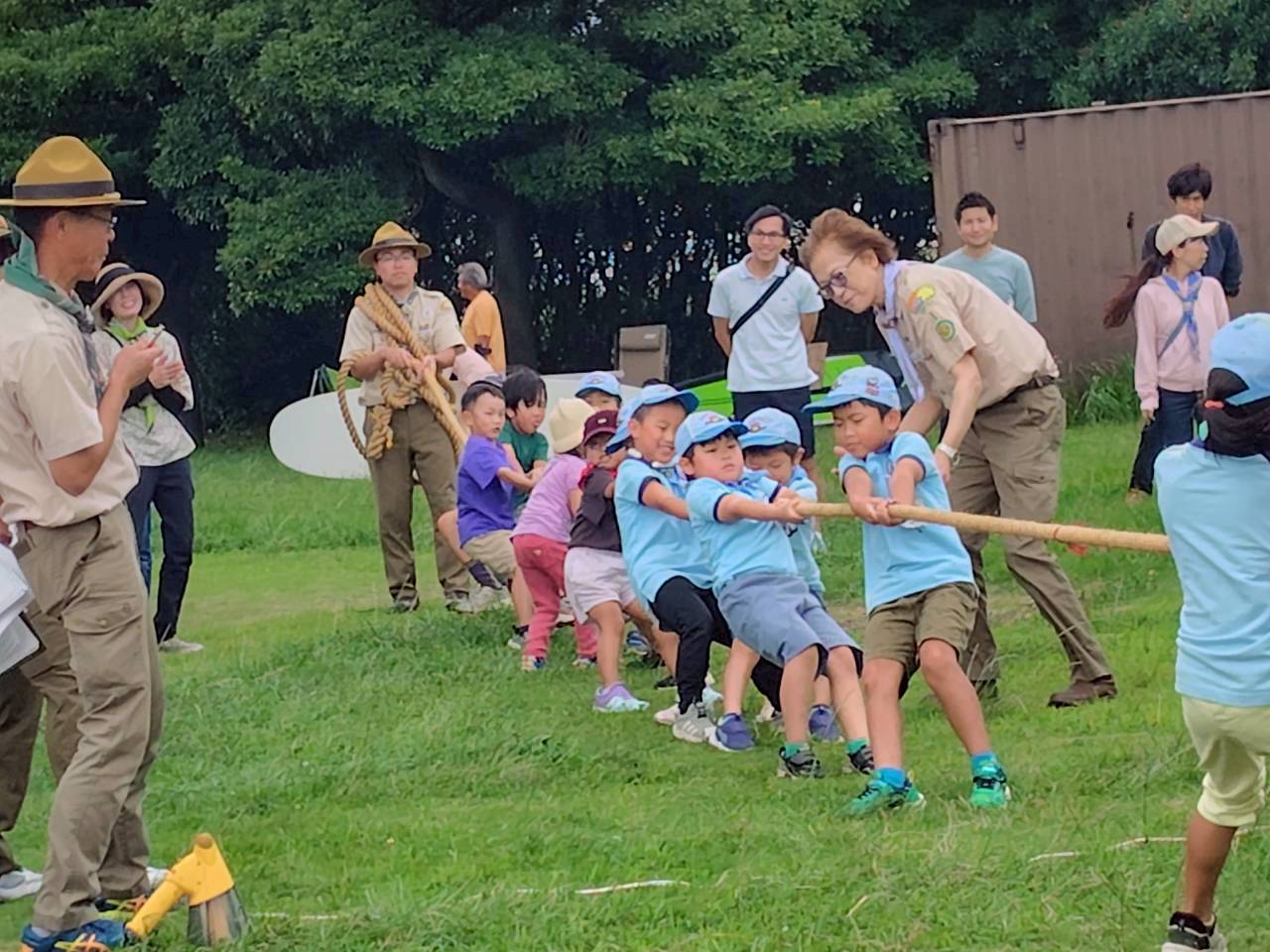 どの競技も大盛り上がりで、走ったり力を合わせたりしながら、スカウトたちは一生懸命チャレンジしていました。特に綱引きでは大きな声援が飛び交い、仲間と力を合わせる楽しさを全身で感じていたようです。