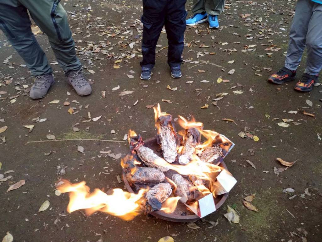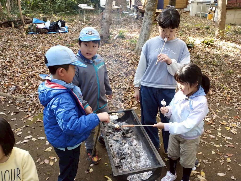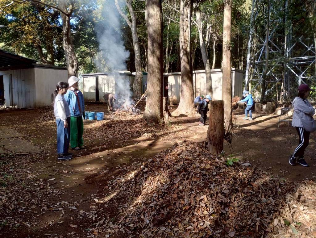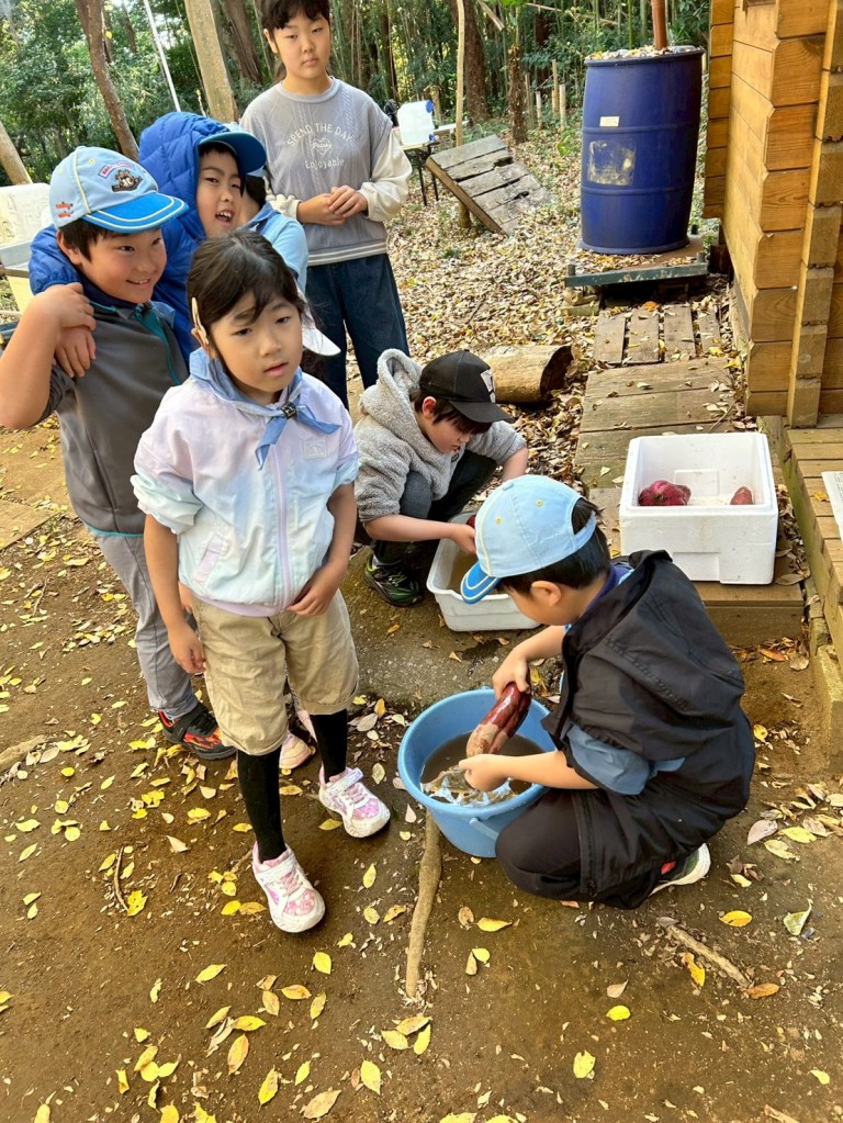 そして30日は、そのサツマイモを使って落ち葉焚きに挑戦。集めた落ち葉で火を起こし、ホクホクの焼き芋を作りました。他にも、牛乳パックを使った“カートンドッグ”にも挑戦!パックが燃えると中のホットドッグがあつあつに仕上がり、こちらも大成功でした。